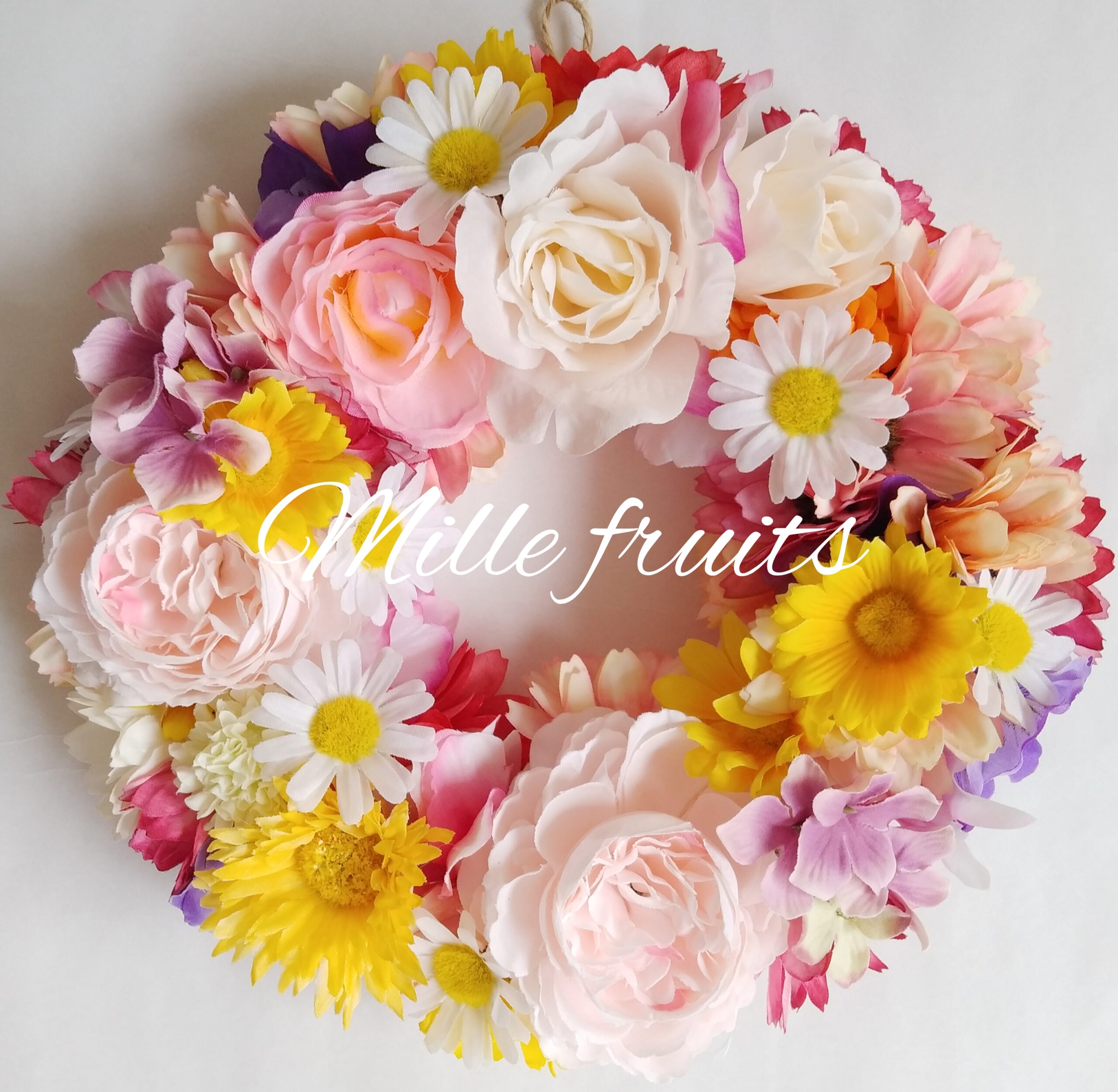- こちらのリースは、アーティフィシャルフラワー(造花)でお作りしています。
