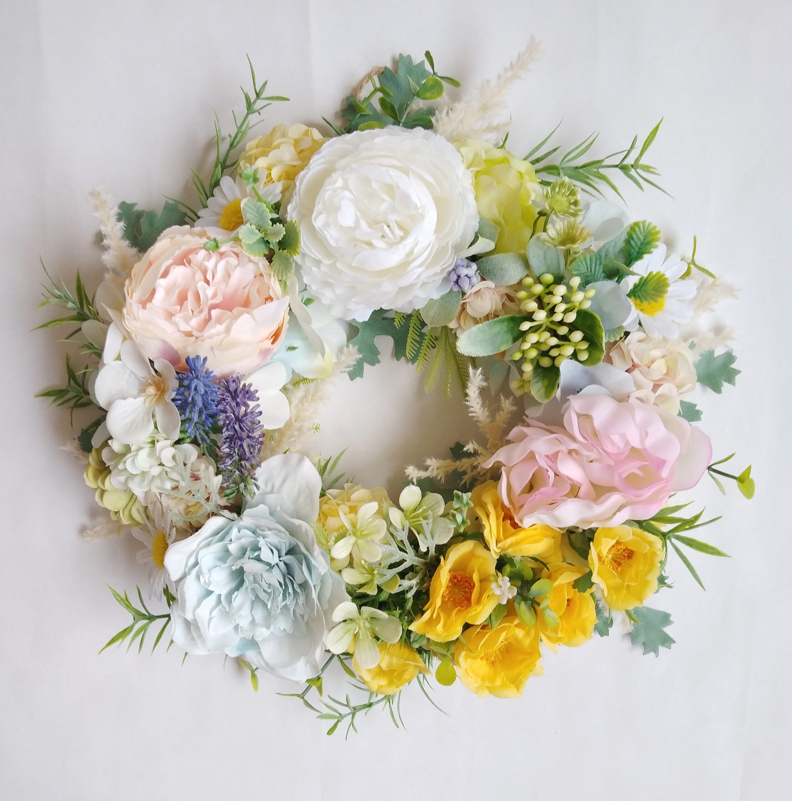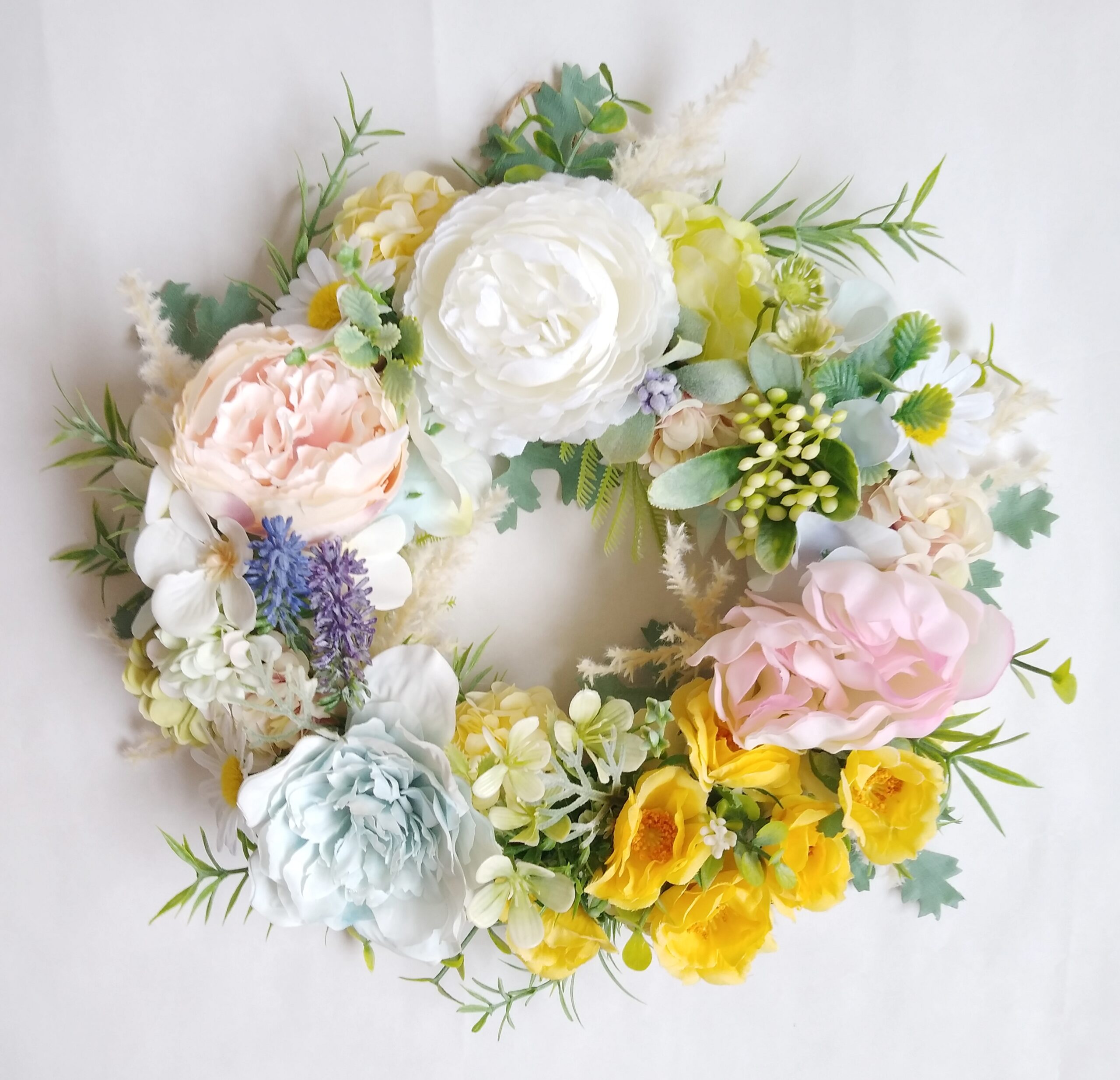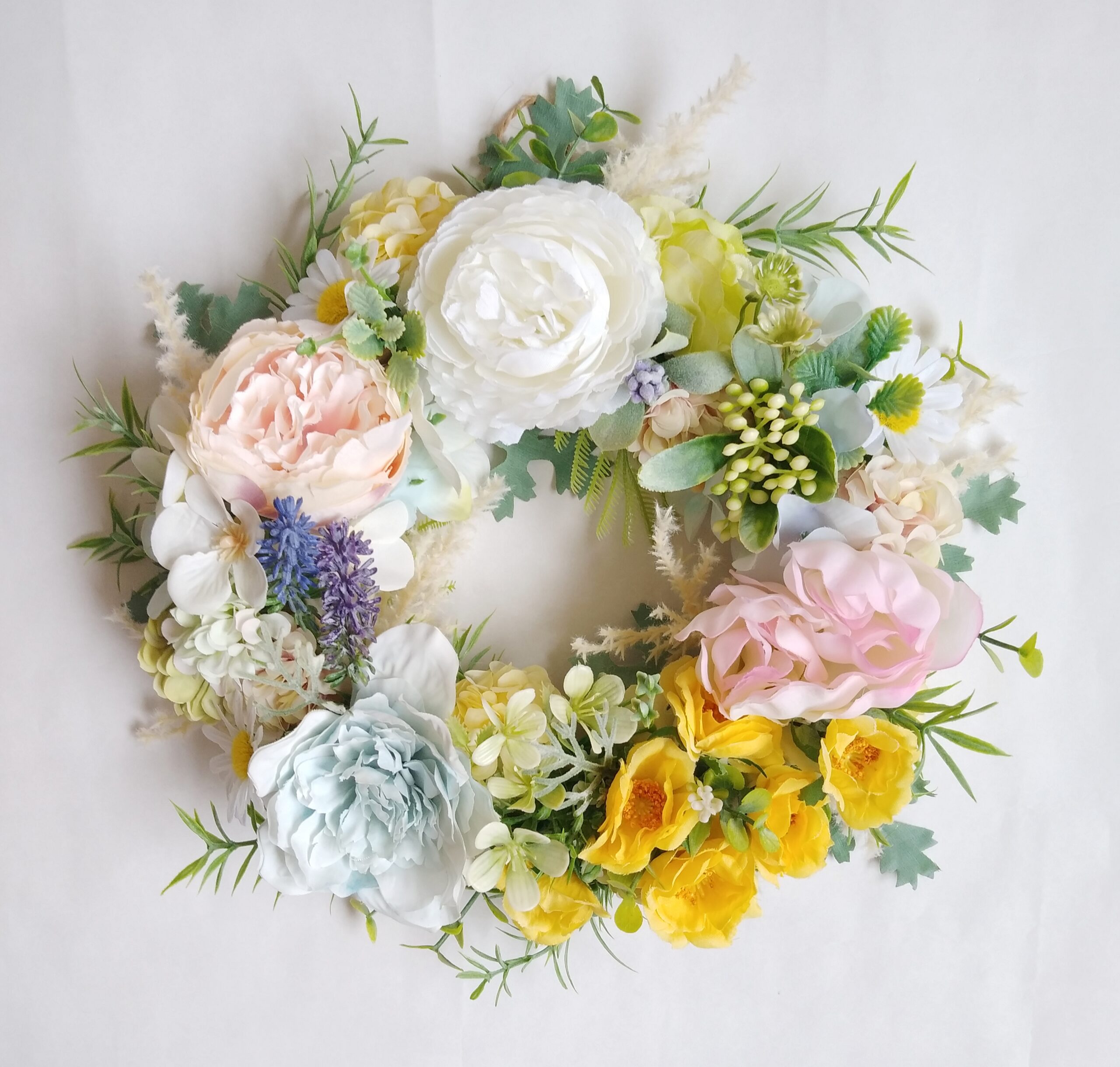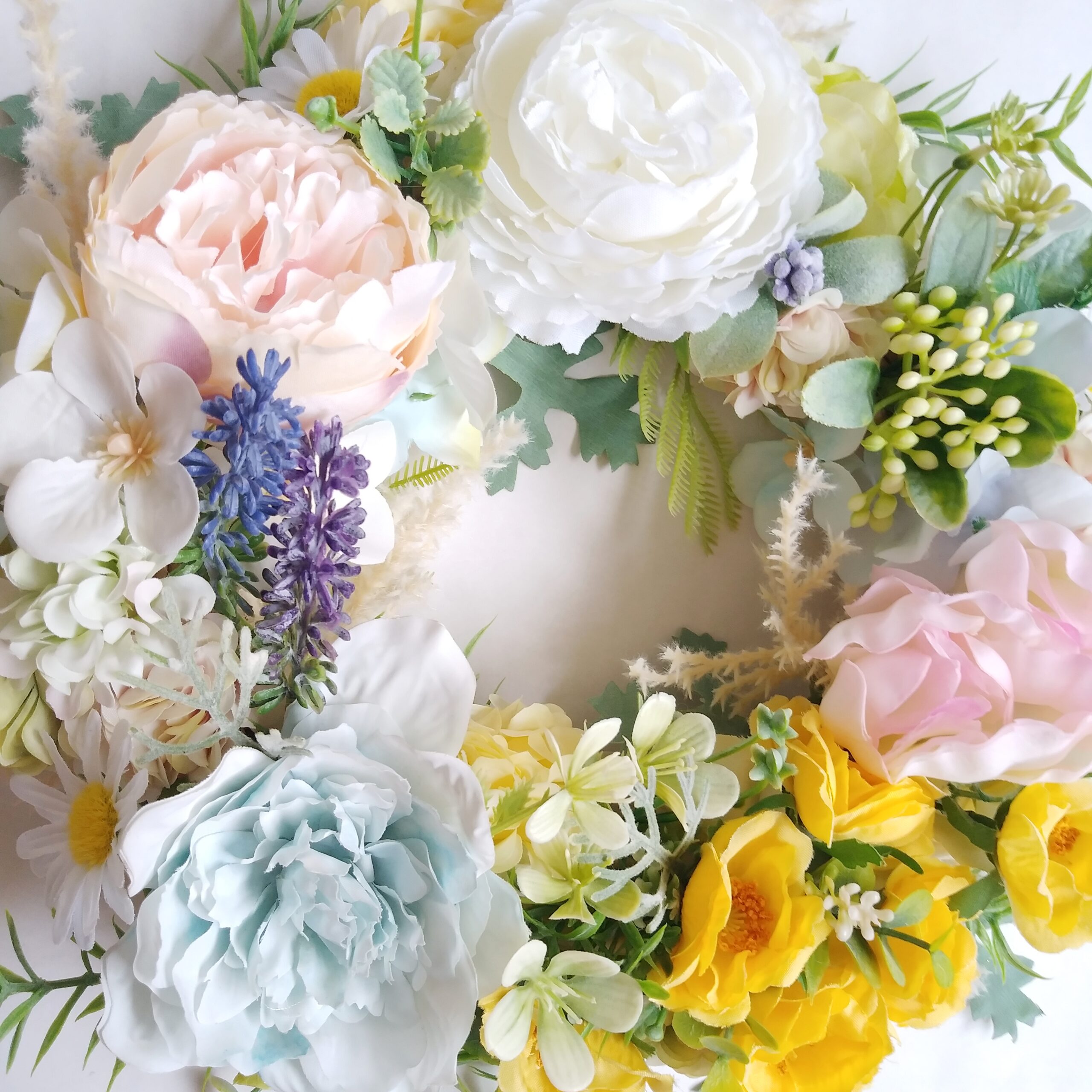 - こちらのリースは、アーティフィシャルフラワー(造花)でお作りしています。水やりをしなくてOK、枯れることもありません。